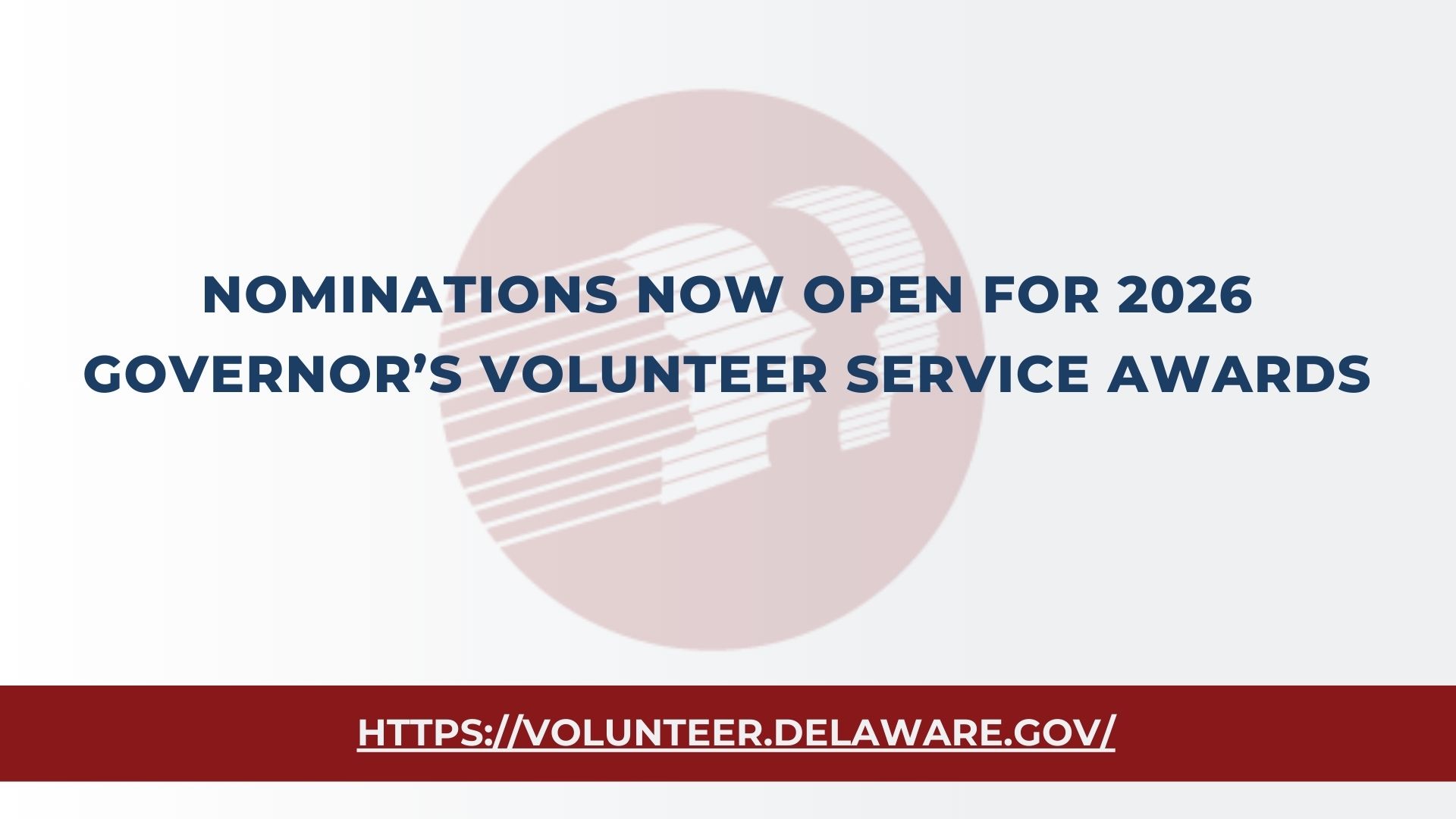Nominations for both awards will be accepted by the State Office of Volunteerism until Friday, Jan. 10, 2026. Nomination forms, along with detailed award criteria, are available at Volunteer Delaware.
