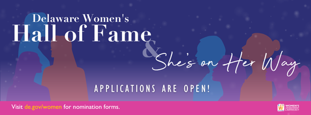 WILMINGTON – Governor Matt Meyer and the Office of Women’s Advancement & Advocacy (OWAA) announced today the opening of the nomination process for the 2026 Delaware Women’s Hall of Fame and the She’s On Her Way Awards. Nomination forms are available online at de.gov/women. The deadline to submit nominations is midnight on April 2, 2026.